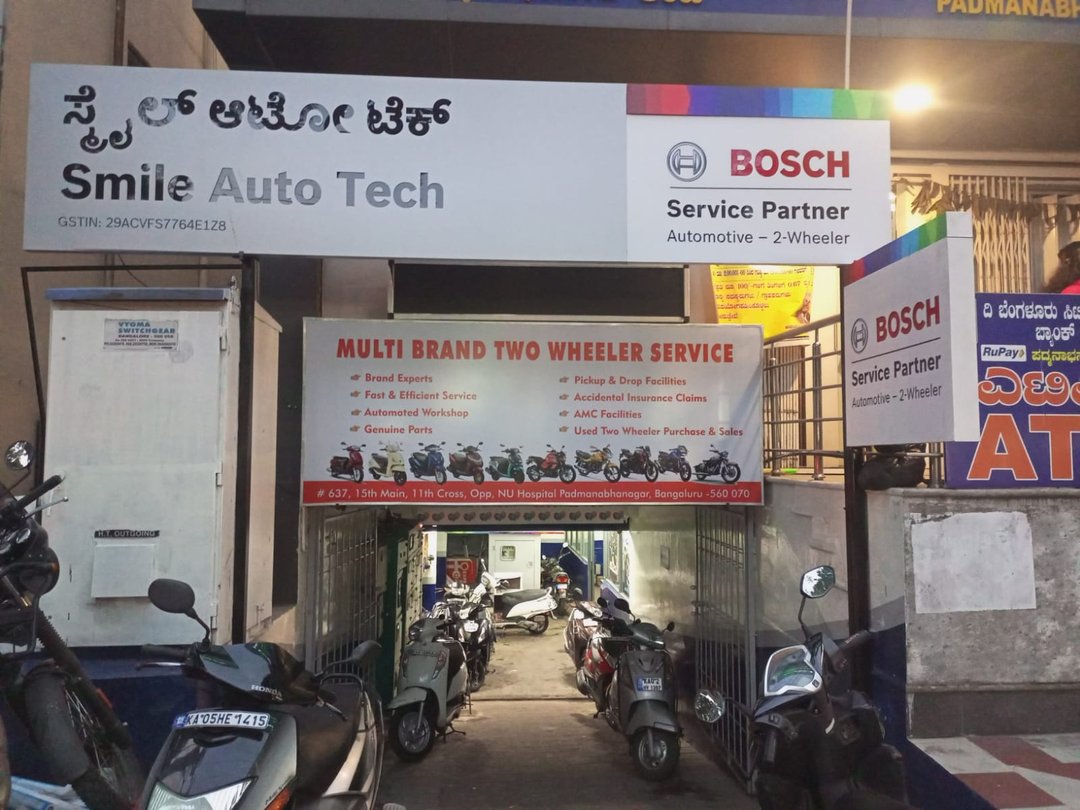 Smile Auto Tech- Best Two Wheeler Bosch Authorized Service Center in Padmanabha Nagar, Bangalore. Established in 2011, We are one of the leading service providers in the area. We have a team of highly qualified and experienced professionals who provide best-in-class service to our customers. We offer a wide range of services for Two Wheeler Bosch products, which include servicing, repairing, and maintaining them. We also provide genuine spare parts for all Two Wheeler Bosch products. We aim to provide quality service at an affordable price and exceed customer expectations every time. We also Buy And Sell Used Bikes in Padmanabha Nagar Bangalore.